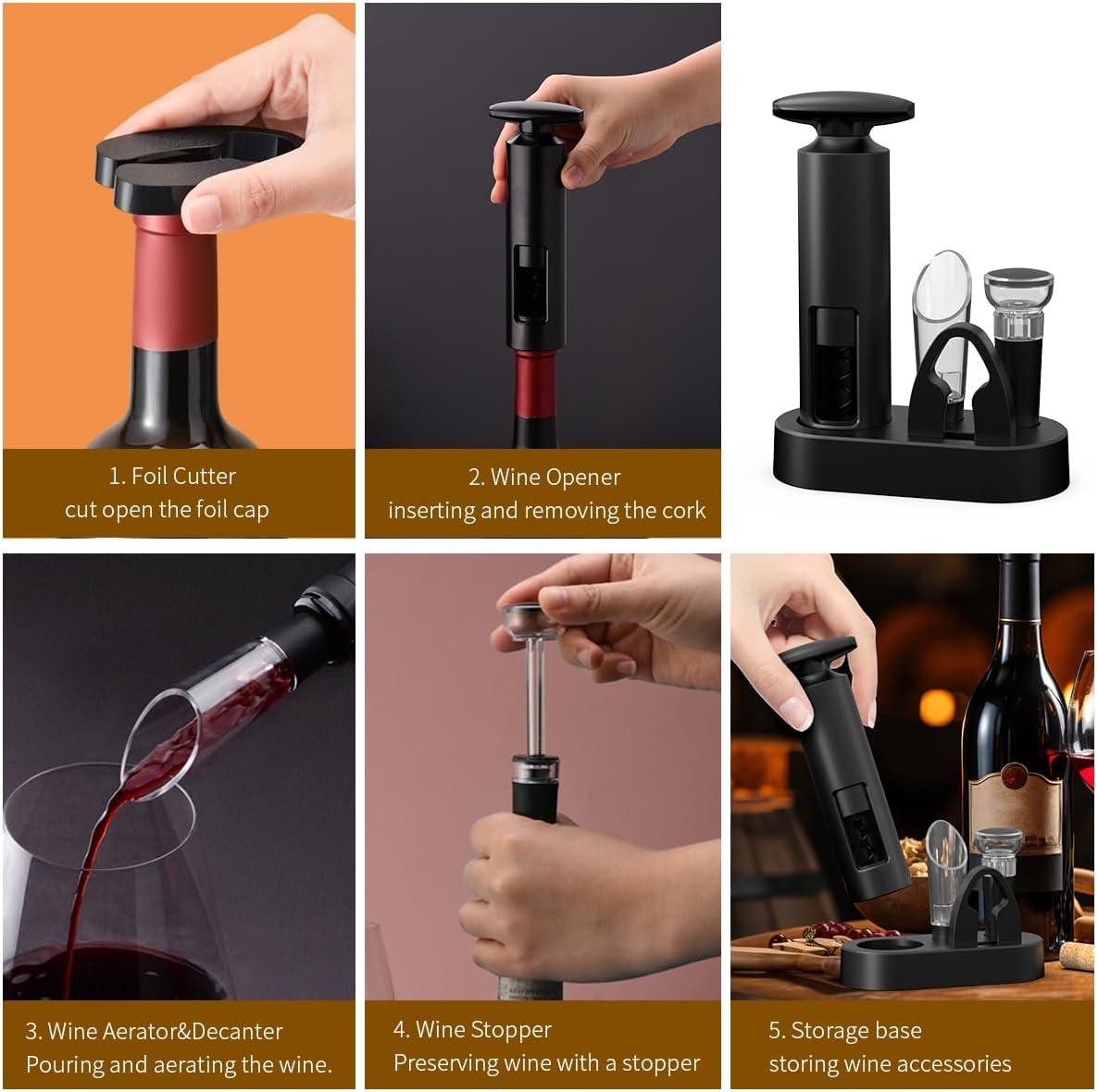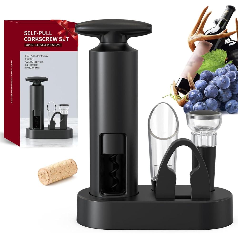 4-IN1 Gift Set – This 4 in 1 manual wine opener set includes a foil cutter, wine pourer, vacuum stopper, and a sleek storage base. Practical and elegantly packaged, it’s the perfect gift for wine lovers, ideal for birthdays, holidays, or housewarmings